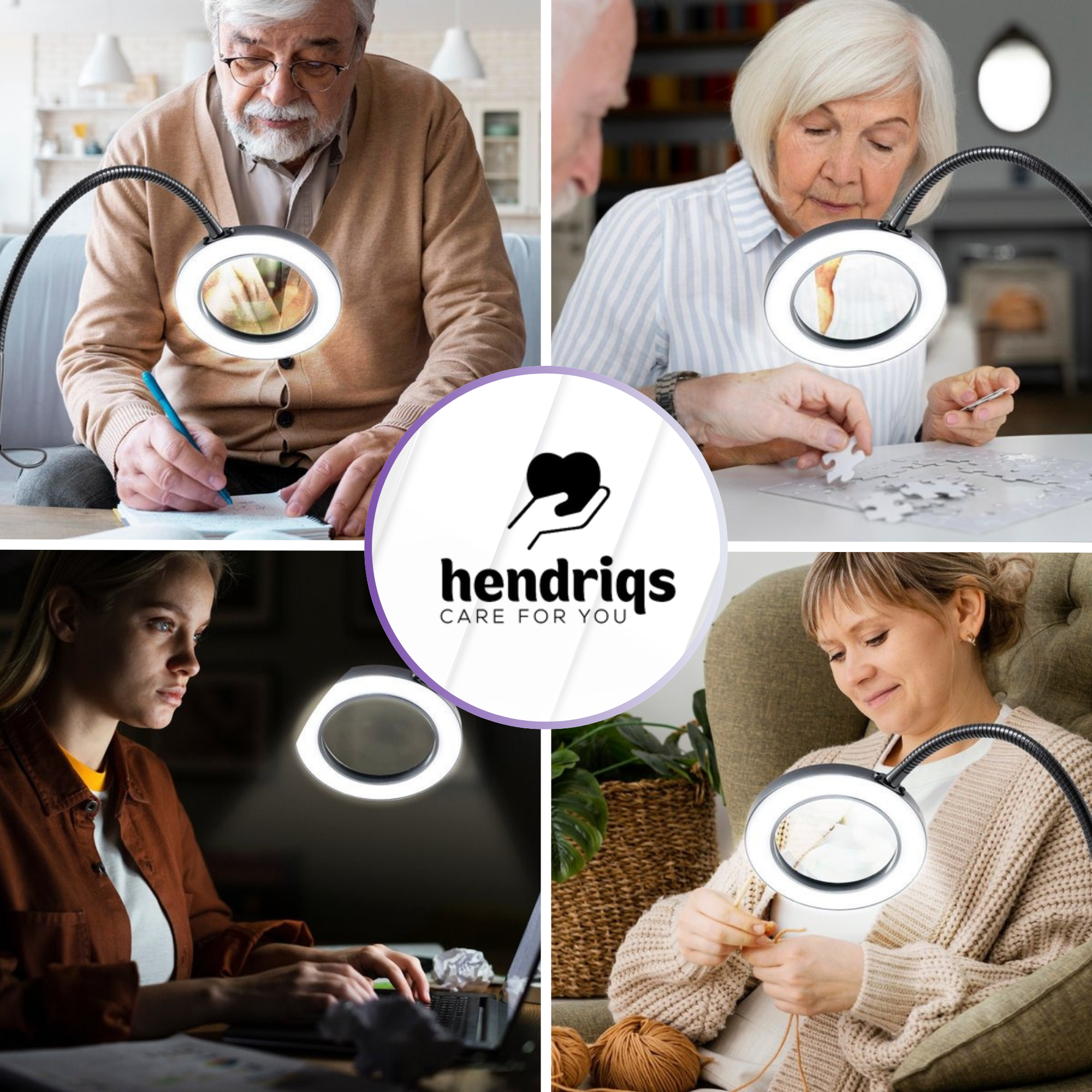 De Hendriqs loeplamp biedt verlichting voor elke situatie. Van zacht geel licht bij vermoeide ogen tijdens het ontspannen lezen tot helder wit licht voor precieze klusjes zoals haken, breien en Diamond Painting – deze tafelloep biedt de perfecte verlichting voor volwassenen en ouderen.