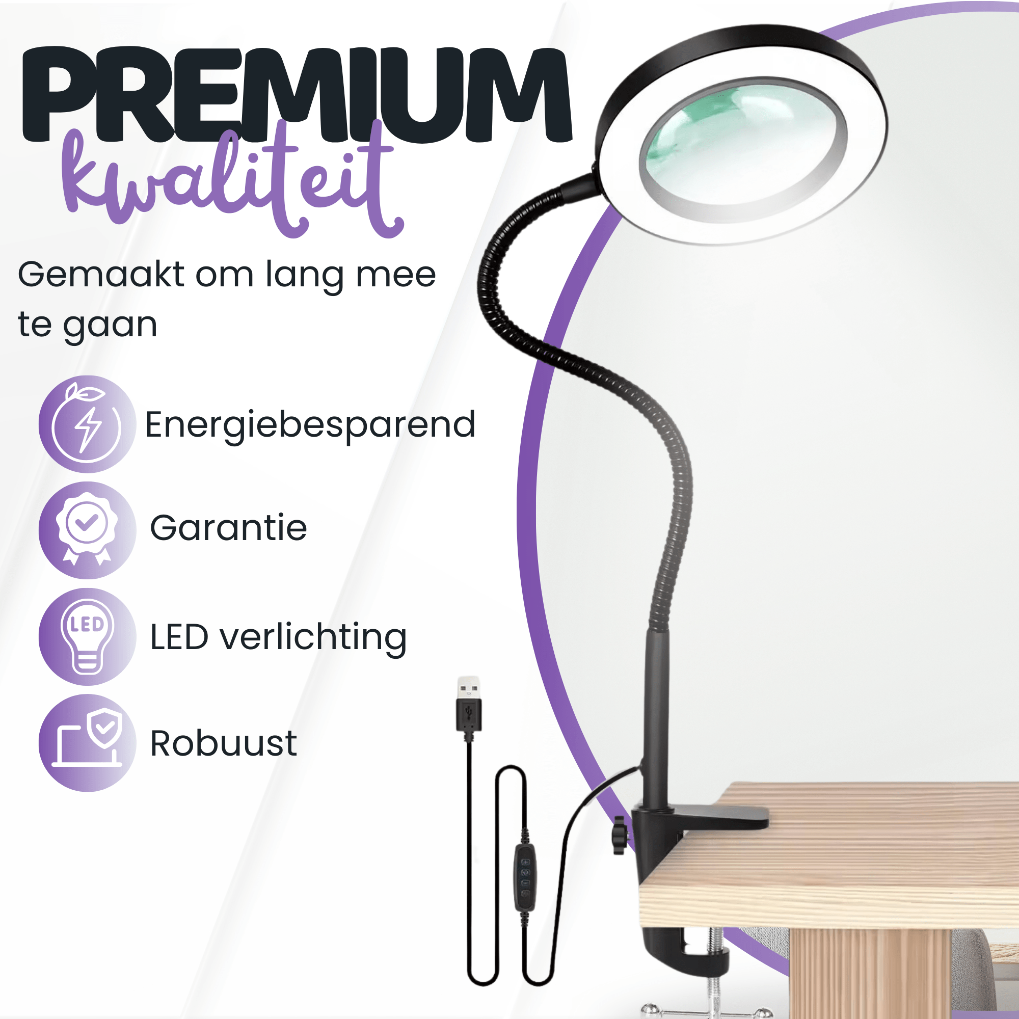 Hendriqs® loeplamp met LED verlichting en tafelklem. Deze veelzijdige loeplamp maakt van inspanning ontspanning dankzij een haarscherpe vergroting en maar liefst 30 verlichtingsopties. Perfect voor een ontspannen avond met een goed boek of juist bij nauwkeurig handwerk!