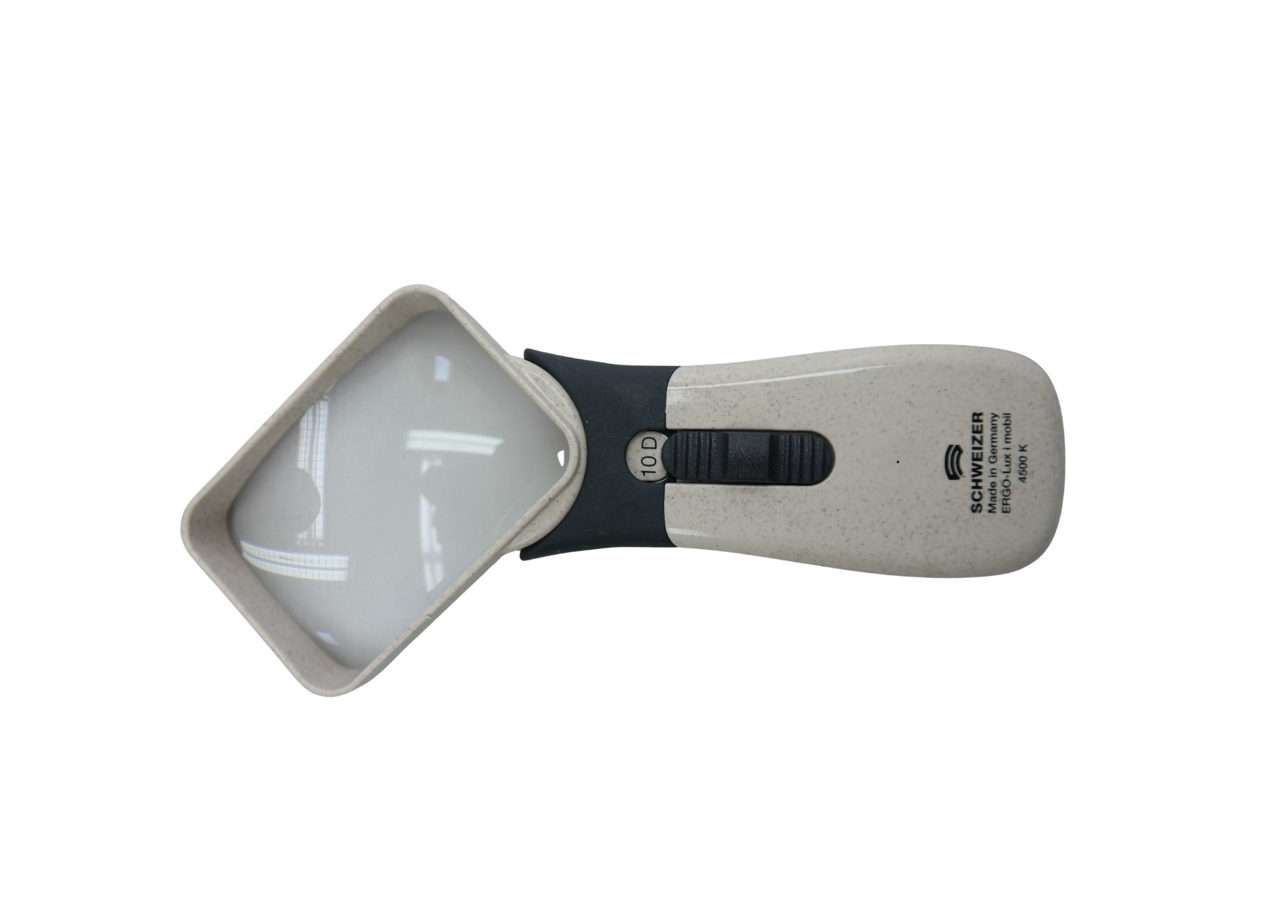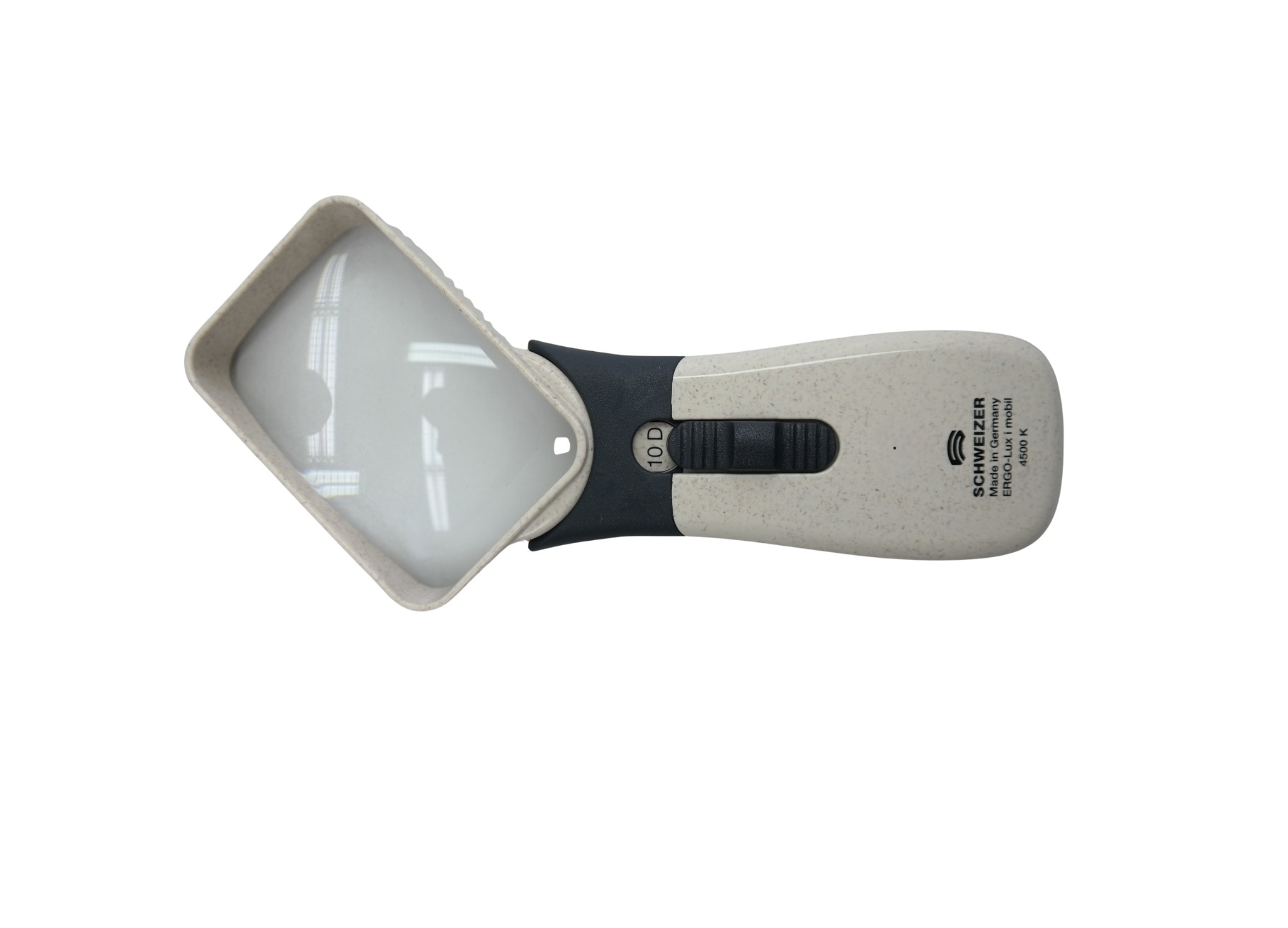 De loep heeft een ergonomisch handvat en een groot en gemakkelijk te bedienen aan/uit schuifknop. Met de aan/uit schuifknop kunt u de verlichting in twee verschillende standen gebruiken. Dit betreft één minder felle en één meer felle, heldere verlichting. De ERGO-Lux GL c mobil is eenvoudig en efficiënt op te laden via USB-C. Hiermee kunt u de loep circa 18 uur gebruiken op niveau 1 en circa 5 uur op niveau 2.