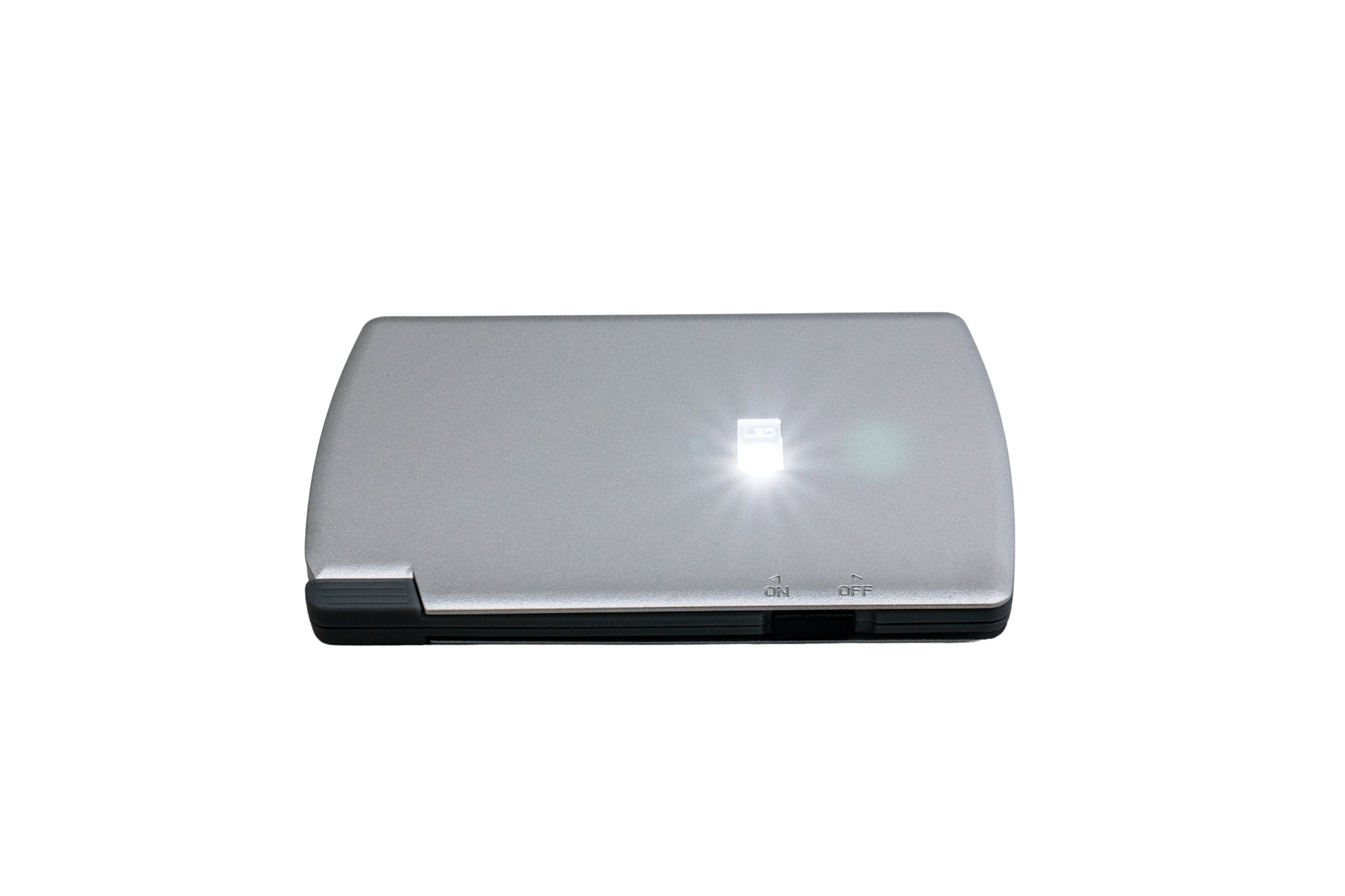 Compact, handzaam en opvouwbaar past de loep perfect in elke tas – een betrouwbare metgezel voor onderweg of thuis. De loep is tevens te gebruiken als zaklamp.